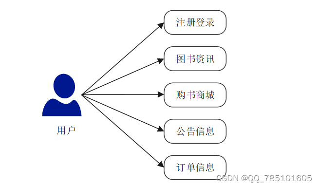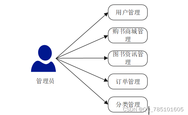 (3)确定好系统使用的技术,进行在线确认系统所划分的用户角色,并且根据用户角色划分确定所要设计的功能模块,对于响应式的网上书店系统的设计主要划分别为管理员和用户角色,并所使用的功能模块也相应不同,但是系统的数据库实现的内容是交互的,用户可以随时根据自己的需求进行信息搜索,对于系统工作人员可以根据自己的分管内容进行在线信息的处理及操作,管理员获取到所有用户的详细数据信息,并根据需求进行第一时间处理解决。