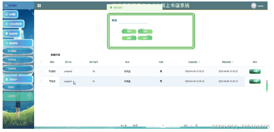 书籍管理界面如下图所示。