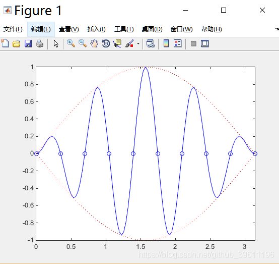 y1=sin(t)*[1,-1];% 包络线函数值,是(101x2)的矩阵