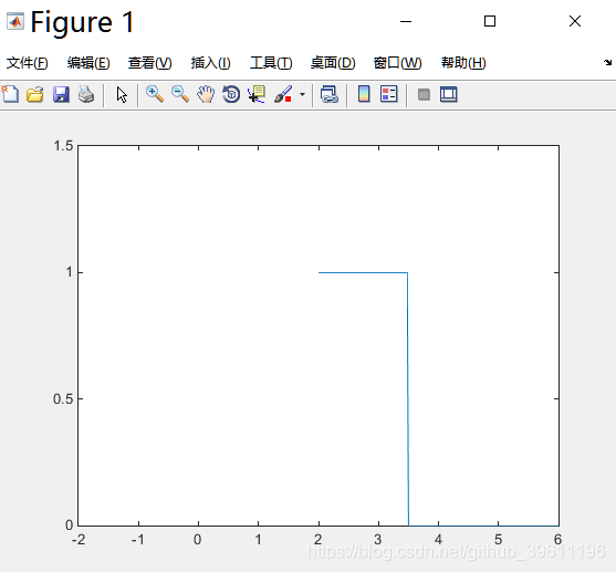 plot(t, rectpuls(t-2, 3));