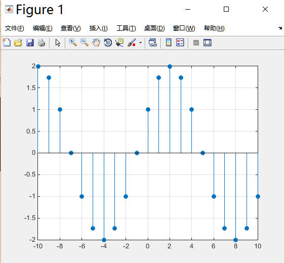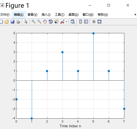 stem(n, x, 'fill'); grid on;