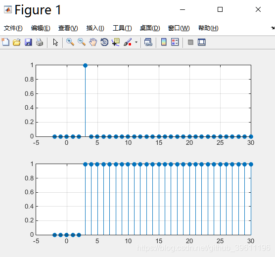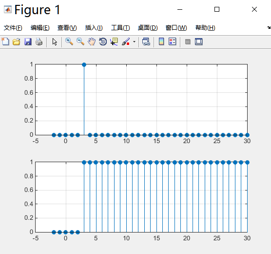 产生单位脉冲序列m[n]和单位跃阶序列u[n-3]