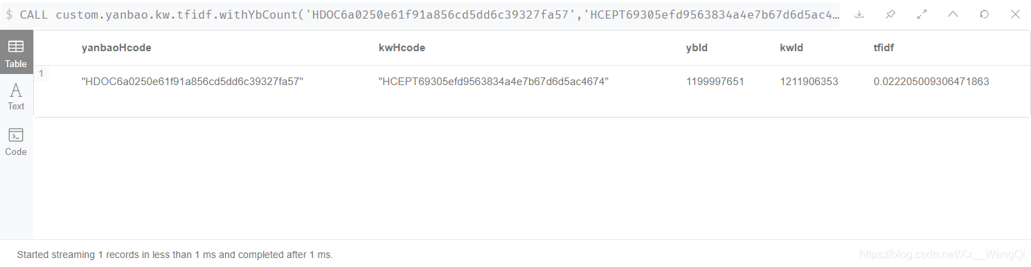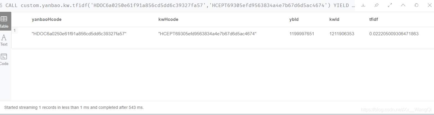 RETURN ybId,kwId,tf*idf AS `TF-IDF`