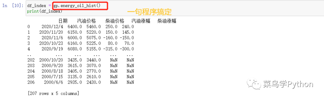 接下来我们来获取一下汽油和柴油的历史调价信息,程序和结果如下所示: