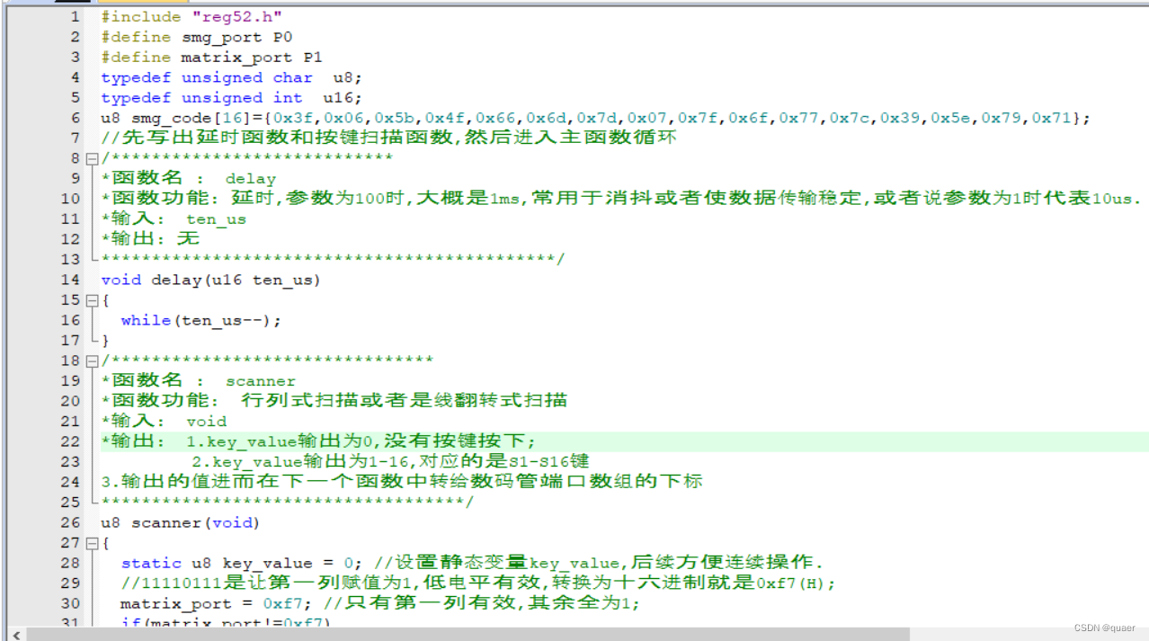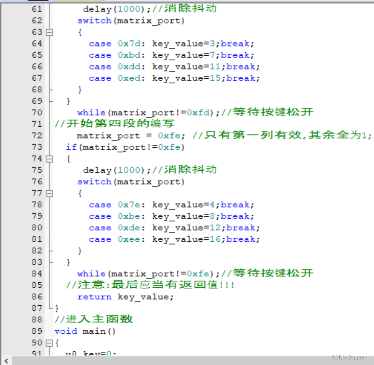 //先写出延时函数和按键扫描函数,然后进入主函数循环