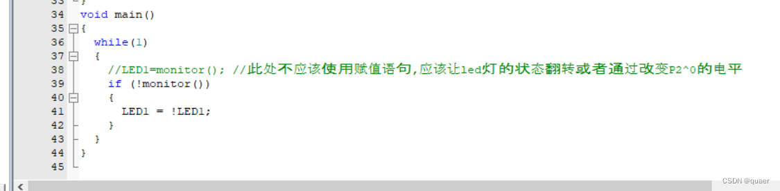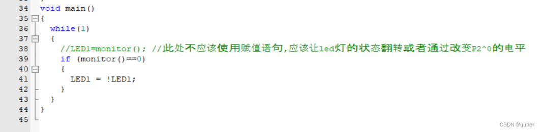 //LED1=monitor(); //此处不应该使用赋值语句,应该让led灯的状态翻转或者通过改变P2^0的电平