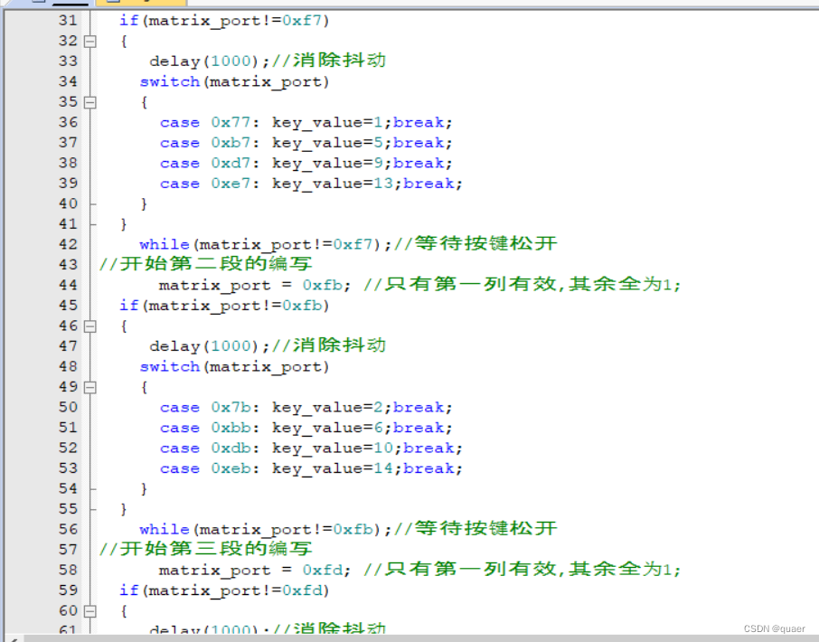 matrix_port = 0xfe; //只有第一列有效,其余全为1;