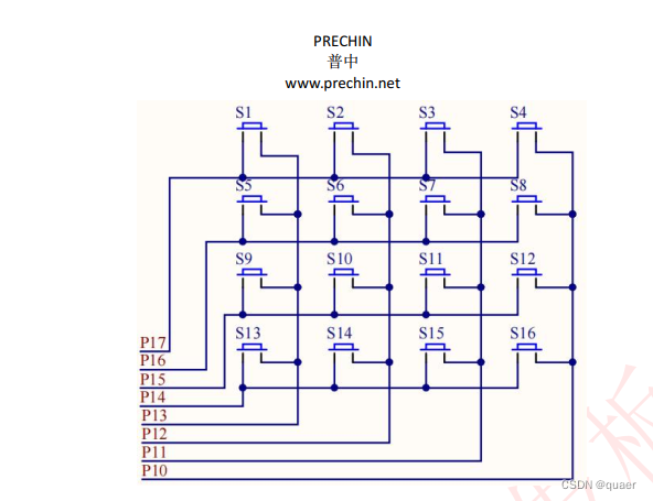 实验板上用的是4*4矩阵键盘,将16个按键排列成4行4列. Line scanning and reverse method.