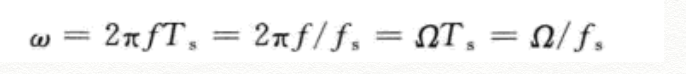 其中f成为模拟频率,Ω=2*Pi*f称为模拟角频率,单位rad/s,我理解为把信号周期T映射到2Pi上,Ts为采样周期。可以理解为吧2Pif每隔Ts取一个点。