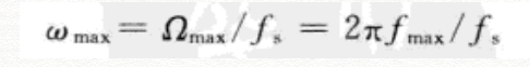 下面是模拟角频率Ω(rad/s)与w数字频率的对应关系,模拟角频率/采样频率得到的结果就是数字频率。