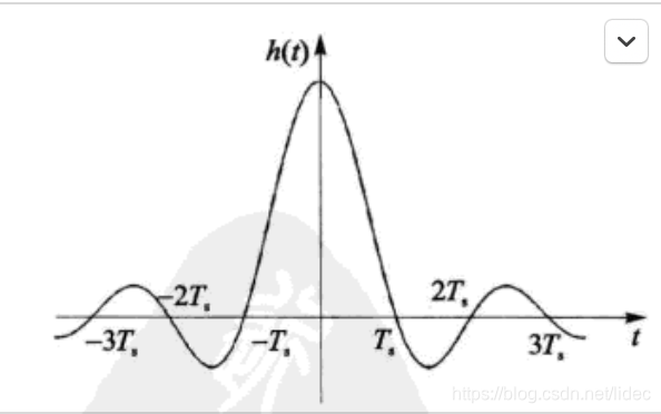 上图虚线理想重构器就是一个这样的低通滤波器。这个方块滤波器在时域的波形如下