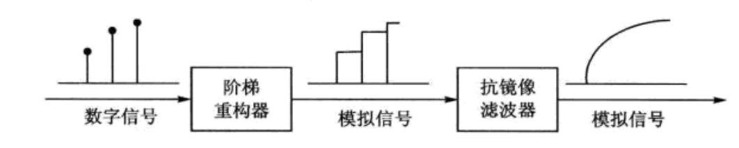 也就是说恢复成模拟信号后,相当于需要在时域卷积一个上图类型的信号,相当于进行一次低通滤波。这里需要记一个结论,形如上图的波形和矩形框这种的波形互为傅立叶变换对,后面还会多次用到这个结论。实际恢复过程中,由于保持器恢复的时候还会引入高频,一般处理流程是在保持器后增加一个叫做康镜像滤波器的低通滤波器。