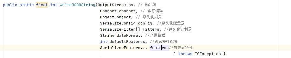 序列化特征一般是通过方法入参的方式来配置我们的方法,可以是单个也可以是多个配置(因为在方法中它是作为可变长参数出现的).