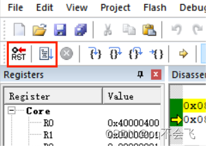 复位:其功能等同于硬件上按复位按钮。相当于实现了一次硬复位。按下该按钮之后,代码会重新从头开始执行。