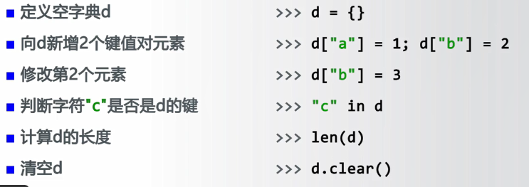 d.clear():删除所有的键值对