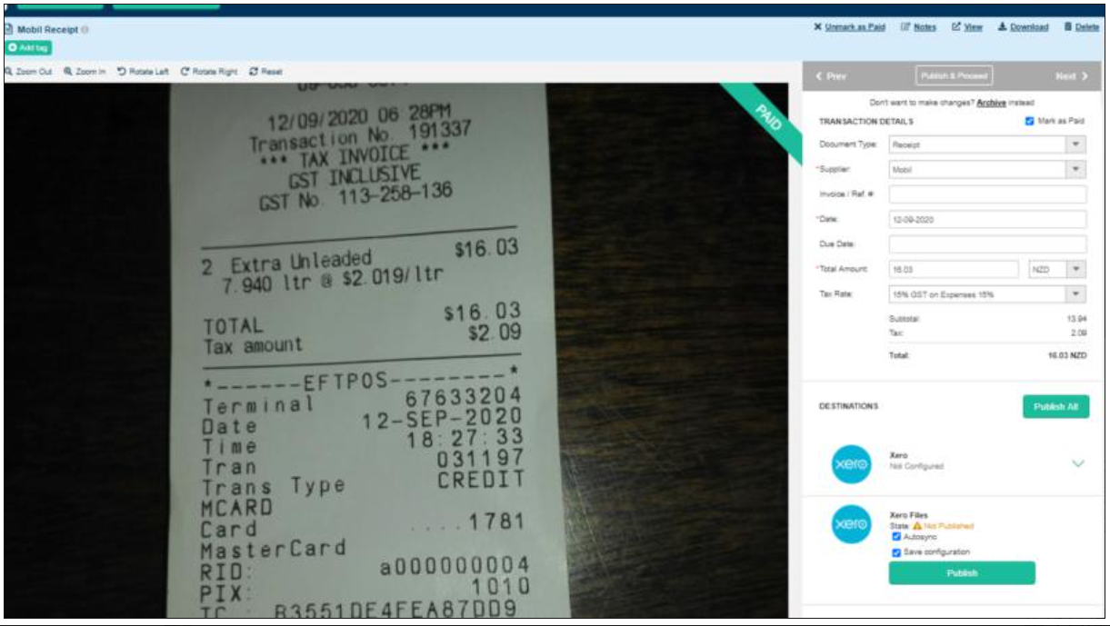 最后用户确认识别无误,可以自动推送到Xero形成供应商发票,附件会留存在Xero中形成电子原始凭证。