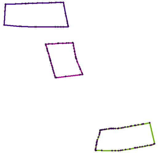- 分别选中每一个矩形的所有点后再使用【数据管理工具】|【要素】|【点转线】(所以这里要选中3次,转换3次),分别将其转成3个闭合线,接着使用【地理处理】|【合并】将其合并成一个线要素后再使用【数据管理工具】|【要素】|【要素转面】将其转换成面要素,最后再将其与“土地利用”数据合并输出为“土地利用1”即可。