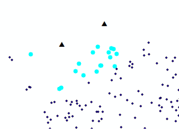 我们打开【选择】|【按位置选择】,目标图层选择“候选点”,源图层选择“小区_1”,目标图层要素的空间选择方法选择:在源图层要素的某一距离范围内,应用搜索距离选择:1500米后导出数据即可。接着还是一样的操作,不过这次目标图层选择为刚才导出的数据,应用距离选择800米,并且反向选择导出即可得到距离小区距离800-1500米的垃圾场候选点,导出数据为“候选点2”。