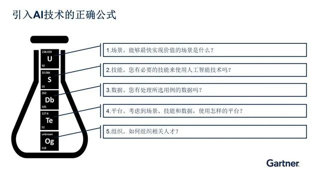 为帮助政府组织正确地引入人工智能,Gartner建议可以从以下五个方面进行准备和布局: