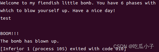 给了一个 bomb.c(无法编译)和 bomb,运行 bomb 会要求输入六个字符串,任何一个错误的都会BOOM!!! 我们必须利用反汇编工具逆向分析这个文件,找出这六个字符串,从而正确输入。