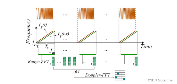 此后,我们应用range-FFT根据周期性得到接下来的形式,再利用这一系列的信号构造了一个连续无线电快照