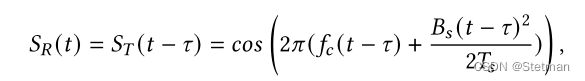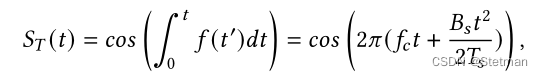 (t表示时间,fc表示启动频率,Bs为扫描带宽,Ts为扫描时长)