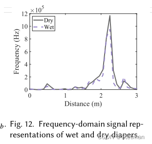 表示CRS''最大值周边一系列点组成的点集。如下图,湿尿布和干尿布的信号表征在频域有明显不同。其中一个主要原因是纸尿裤内部材料遇水会产生凝胶,湿纸尿裤中的凝胶会吸收部分传输的射频信号。
