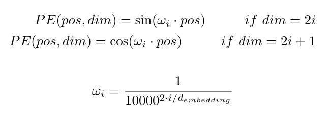 本文在嵌入向量中交替加入正弦和余弦。如果dim是偶数,则sin级数相加,如果dim是奇数,则cos级数相加。