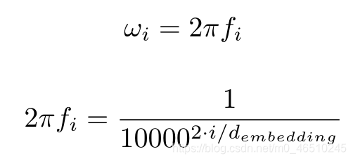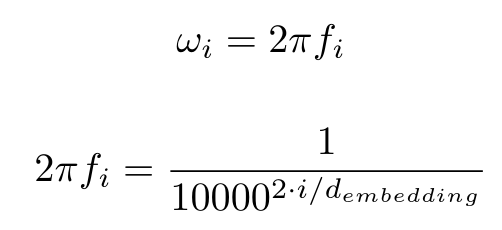 随着 i 从 0 增加到 d_embedding/2,频率也从 1/2π 减少到 1/(2π.10000)