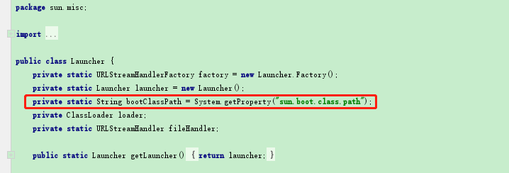 private static String bootClassPath = System.getProperty("sun.boot.class.path");