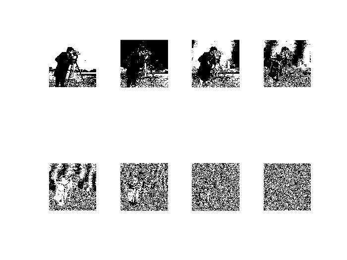 f=imread('cman.tif');%读图[m,n]=size(f);img=zeros(m,n,8);%储存比特平面(二值图像)