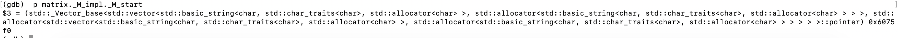 通过 “p *matrix._M_impl._M_start”便可以得到第一个元素的内容,如下: