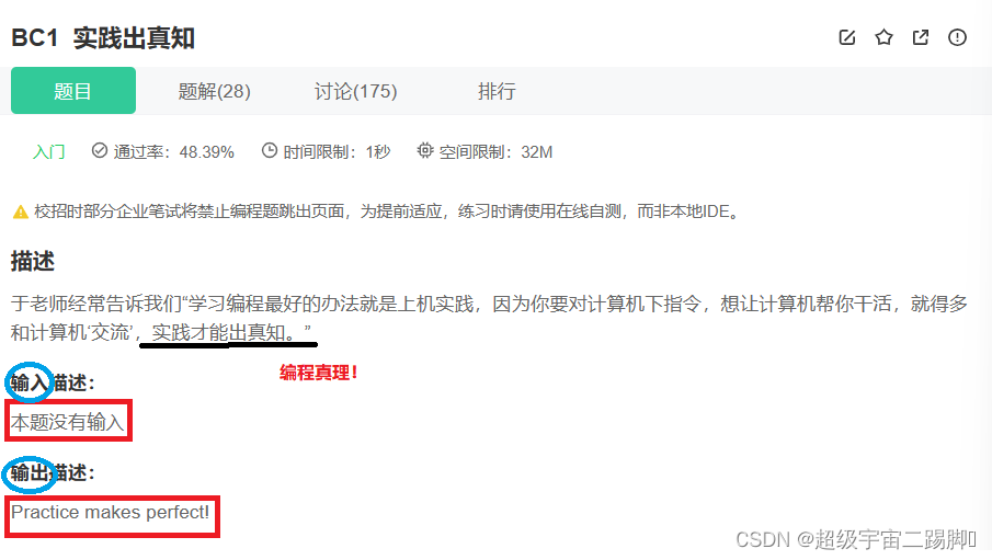 1.(入门) BC1-实践出真知_牛客题霸_牛客网 (nowcoder.com)