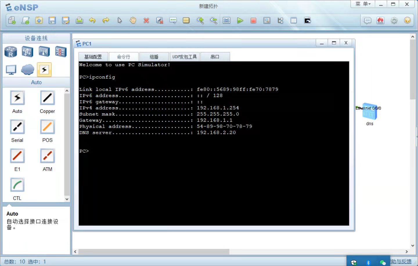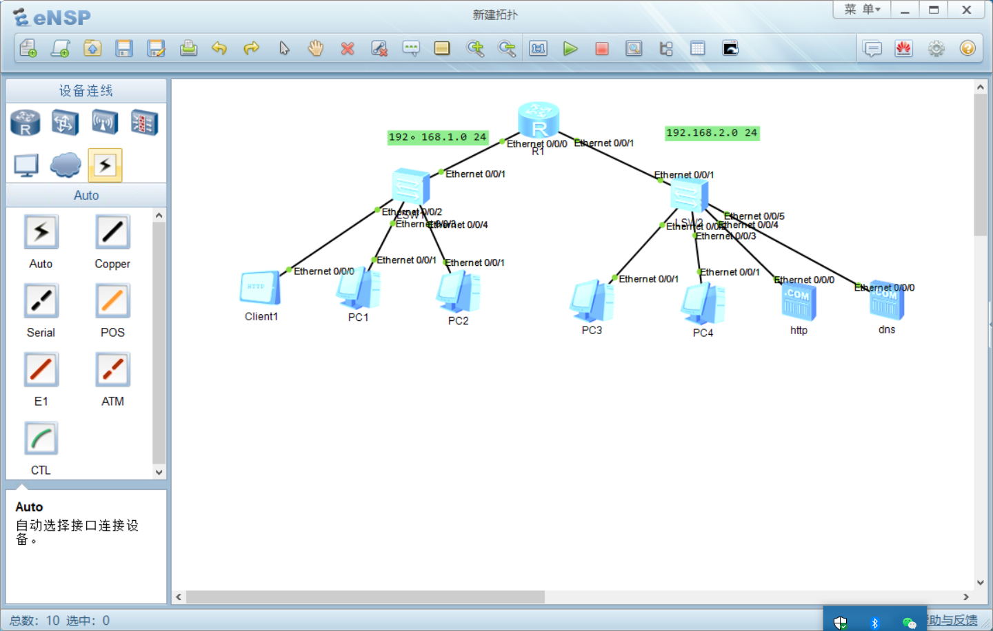 目的:在一个广播域中,创建一台DHCP服务器,然后需要IP地址的终端设备通过广播域寻找到DHCP服务器寻求IP 。