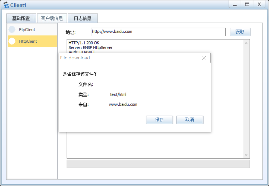 5、使用Clint1登录网站www.baidu.com,检查服务器是否搭建成功。