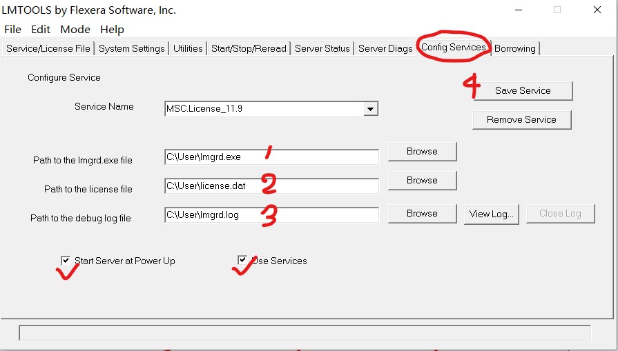 第一步:图中1.2.3对应设置好,最后4保存服务。