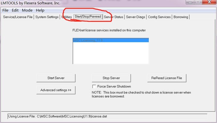 选择star/stop/reread项,然后重新读取许可证文件即可