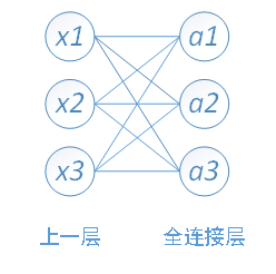 全连接层的每一个结点都与上一层的所有结点相连。类似下图: