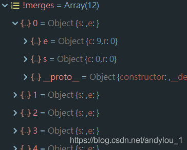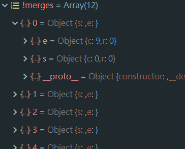 其中s表示开始单元格的坐标,c是列坐标,r是行坐标,都是从0开始,e表示结束单元格的坐标,我们通过修改这些数据完成单元格的合并与拆分。