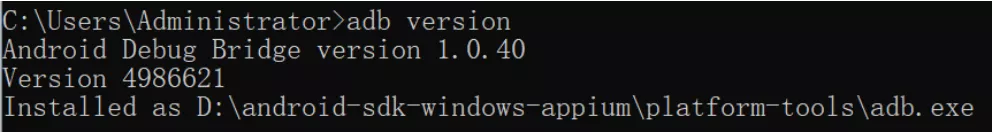 系统的cmd窗口输入adb version来检测是否安装成功,如果有下面的信息显示成功的话,那么SDK配置就OK了。