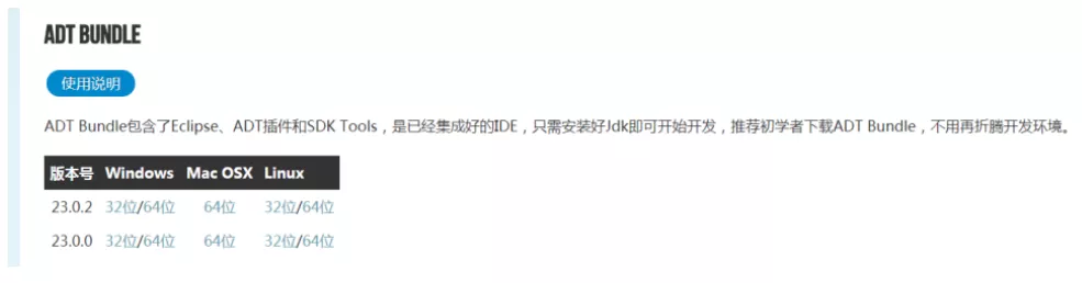 因为选择SDK进行下载的话,它只包含有基本的SDK工具,后面还需要自己手动通过AVD manager来下载对应的软件包,所以建议初学者就下载ADT,这个已经包含android app自动化所需的相关SDK工具,不需要另外下载了,省事。
