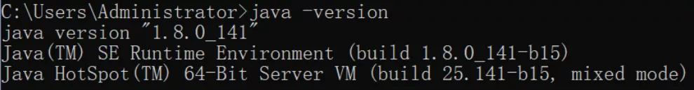 打开Windows的cmd窗口,输入以下命令回车,得到如下提示表示JDK安装和配置没有问题。