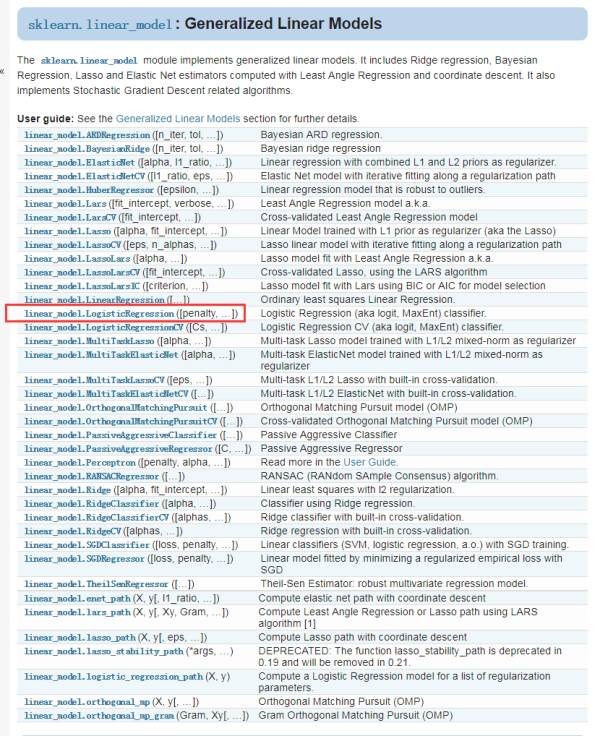 对于每个函数的具体使用,可以看下官方文档:http://scikit-learn.org/dev/modules/generated/sklearn.linear_model.LogisticRegression.html#sklearn.linear_model.LogisticRegression