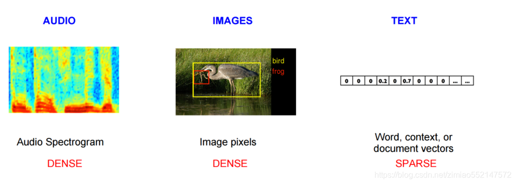图像和音频处理系统采用的是庞大的高维度数据集,对于图像数据来说,此类数据集会编码为单个原始像素强度的向量。不过,自然语言处理系统一直以来都将字词视为离散的原子符号,将字词表示为唯一的离散 ID 还会导致数据稀疏性,并且通常意味着我们可能需要更多数据才能成功训练统计模型。使用向量表示法可以扫除其中一些障碍。