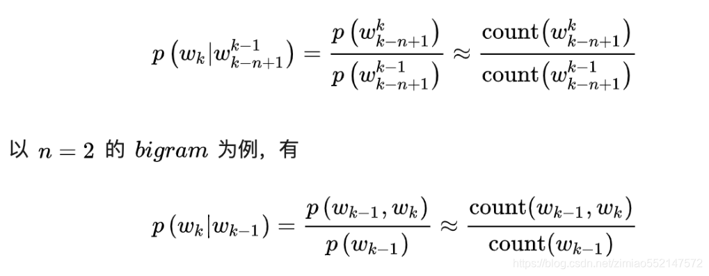 - 根据条件概率公式与大数定律,当语料的规模足够大时,有
