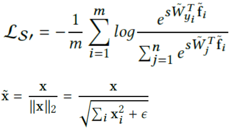 去掉||w||和||x||影响,对权值w和输入x都进行了归一化操作,同时外部乘以系数s,注意必须乘以s,保证变换前和变换后整体的均值一样。注意这里去掉了margin。