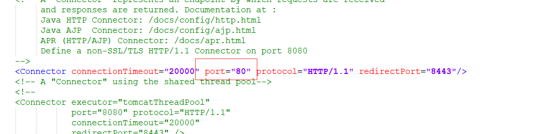 tomcat默认端口8080,可以通过conf/server.xml进行修改。如下图: