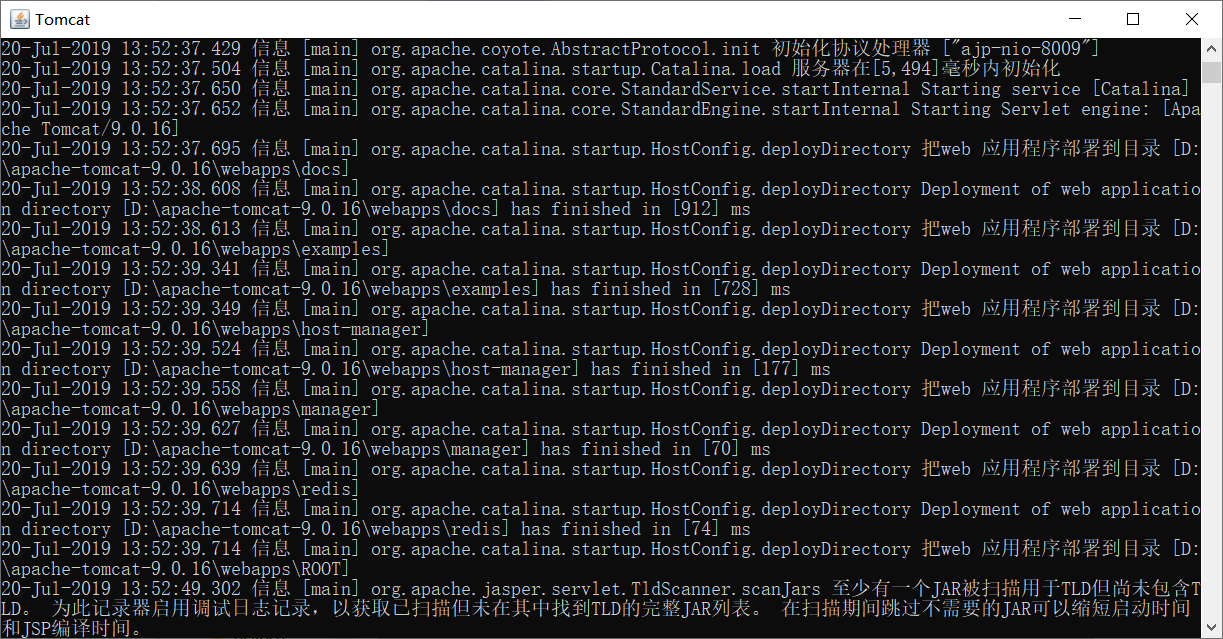 并且启动以后这个黑框框会一直存在的,如果闪退说明出现端口占用,需要去进行排查。