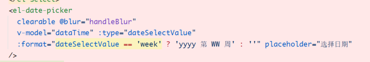 因为涉及到动态切换 日 周 月 的查询条件,所以通过 dateSelectValue 来设置 el-date-picker 的 type 来设置该时间选择器的选择类型。
