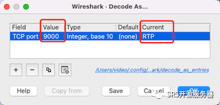 有两种方法,一种直接打开包后,输入过滤tcp.port==9000,然后右键包,选择Decode as > RTP,就可以看到解析成了RFC4517,如下图所示: